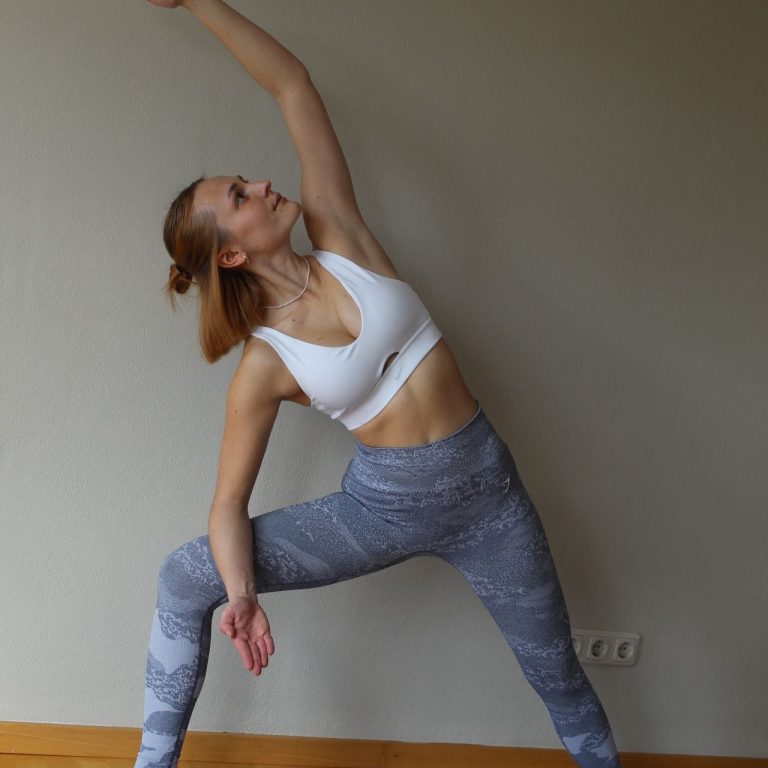 In der gestreckten Seitwinkel-Haltung wird der Rücken & Bauch gestärkt, ebenso wird die Hüfte geöffnet.